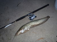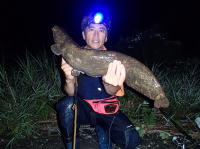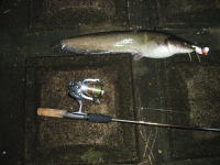前日に降った雨のあとで、今夜は釣れるのでは? とのことで、pm9時半に大阪を出発。am1時半ごろ、立て続けに2本のオオナマズをGET! しかし、それから、夜明けまではケタバスのみ。 | ||||||
