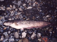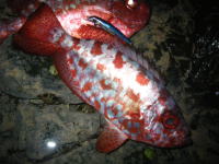 フォーラムの翌日、高知のSPLASHメンバーと夕涼みを兼ねて、釣行してきました。 初めてのポイントで、しかも一投目で86cmのアカメをキャッチ。 桜井氏に手伝ってもらって、タグ&リリースすることが出来ました。 タグ&リリースの準備と手慣れた作業性は、さすが桜井氏。 ダメージも少なく、100点満点のタグ&リリースでした。 |