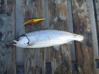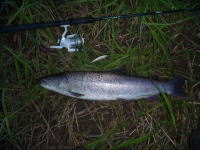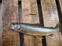2年ぶりの北海道、なんとか、イトウ1匹、稚内の中村釣り具で 購入のDコンタクトで、 然別湖では、小型のサクラとミヤベイワナをスプーン、ミノーで、 然別川では、小型のレインボーをゲット。ホタテの刺身が旨かったです。 |