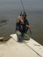 前日の雨で水位が上がり、オオナマズが接岸しているだろうという読みで、出かけたのですが、オオナマズはまったくのノーヒット。 外道に釣れたイワトコナマズ一匹でした。 |