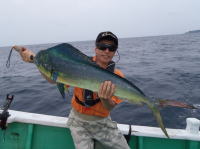 この日は、天候に恵まれ、波もなく、釣りやすい一日でした。 しかし、本命の灯台下ポイントは全滅。後半、樫野崎沖で立て続けにHIT! 全体的にシイラの数はでたものの、ほとんどが5kgクラスでした。 |