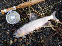 前から目をつけていたポイントで2ポンドティペットで狙ってみました。 先週は合わせ切れ1回でノーフィッシュ今回は合わせ切れ3回目にやっとゲット。 |