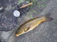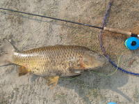 天気が良かったので、日向ぼっこがてら、コイ釣りに行きました。 大和川水系にしては良く引くコイでした。 |