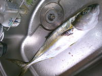 この日は、仲間と中紀にシイラを狙いにいきました。 ルアーでボウズ逃れをしたあと、スーパーで買ったアジをチャミングして、なんとかフライでも釣ることができました。 |