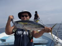 藤岡さんの知り合いのボートに乗せてもらって、加太沖のジギングに行って来ました。 僕は、船酔いで調子が悪かったのですが、松浦さんは入れ食いのごとく釣っていました。 ハマチ4本キープ、他は全てリリースしました。 |