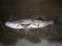 雨が降った翌日、シーバスを狙いに行きました。 アタリがなく、そろそろ帰ろうかと考えていると、何とか一匹だけ釣れました。 |