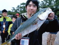 今回は、潮岬オフショアトーナメント(宇井晋介実行委員長)の20周年記念にあたるため、クラブの行事として、Aチーム、Bチームの2艇で参加してきました。 前日は、ダイビングパークのロッジを貸切、夜遅くまで宴会で盛り上がりました。 当日は、天候に恵まれたものの、ターゲットのシイラは少なかったようです。 そのなかで、唯一SPLASH Bチームの三村誠氏が、カンパチを釣って、他魚の部で優勝。 おまけにじゃんけん大会でも優勝するなど、違った意味で、ラッキーな日でした。 |