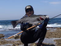 | 2015年3月13日 和歌山県 南紀の地磯 ヒラスズキ 57.5cmタグ&リリース |