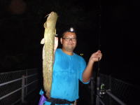 夕涼みがてら、友人とナマズを釣りに行きました。 鉄板ポイントのゴム堰が撤去され、一時はボウズを覚悟しましたが、何とか1匹だけ釣れました。 |