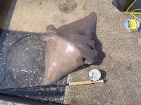 朝からナルトビエイを狙いに行ってきました。 今回は10kg弱を1匹。 それと、推定20kgクラスは約30分のファイトの末針が変形してバレてしまいました。 炎天下でのファイトはかなりキツイものがあります。 |