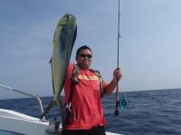 この日は、チャーター便でマグロ、カツオ、シイラ狙いで出船しました。 チャミング用の鰯を確保できたものの、そんな時に限って、マグロやカツオの気配はなく、代わりにシイラが入れ食いでした。 一日中、シイラフィッシングを楽しみました。 |