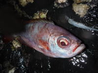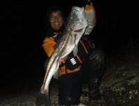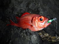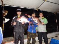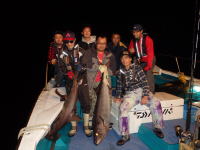 恒例のクラブイベント(深夜のバラムツバトル)を行いました。 最初の流しで、150cmクラスをゲット。 水深140mから150cmのバラムツを引き上げるのは相当な体力を要します。 あまり歳を取ってからするような釣りでない事は十分わかってますけど・・・(笑) これだけの深さから釣り上げたにも関わらず水面まで弱らずファイトを続け、なおかつリリースしても平然と帰っていく驚異的な魚です。 恐るべし深海のモンスター! このバラムツはタグを打ってリリースしてきました。 この日はこの他にクラブメンバーがハンマーヘッドシャークをゲットする等、土曜の夜に熱いバトルが展開されました。 今回も白浜の代々丸さんにお世話になりました。 |