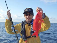 好調と聞いたイカを釣りに出かけてみれば、やっぱりサッパリで 保険のために持っていたワームを投げたら釣れちぃました。 アカマツは煮つけ、ゴマヒレキントキは薄造りで決定です! |