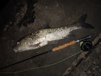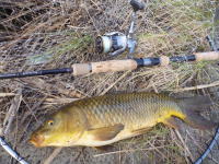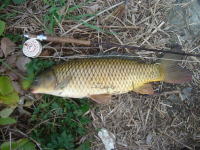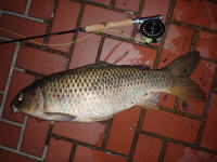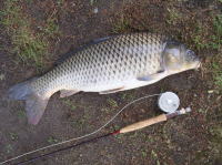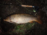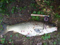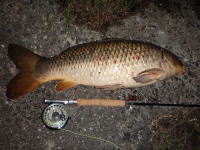 会社の帰り、久しぶりにフライロッドを持ってコイ狙いに行ってきました。 産卵後のコイで少しスキニーな体型でしたが、その分よくファイトしました。 |