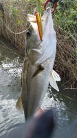 実家帰省がてら近くの河川へ釣行しました。 状況はすこぶるよく、75センチを頭に10匹ほど釣れました。 朝マズメはトップウォータにも高反応で楽しめました。 |
