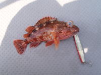 藤岡さんの知り合いの船に乗せてもらってハマチを狙う予定でしたが、 群れに遭遇せず、湾内のガシラ釣りになってしまいました。 |