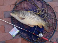 会社の近所の川でパン撒きフライで釣ったコイです。 グッドコンディションでよく引きました。 |