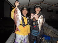 松浦 昌治 小西 雅樹 ロッド:シーバスロッド、 ヘチ竿 ルアー:バイブレーション エサ:イガイ |