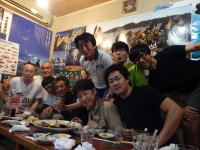 大阪市内の肉料理専門店で、毎年恒例のTEAM SPLASH(大阪地区)の後期ミーティングと忘年会を開きました。 ミーティングの後は、地方から取り寄せたなかなか手に入らない鶏肉や牛肉の料理が出され、おしゃれなビールサーバーを囲んで大いに盛り上がりました。 恒例の大じゃんけん大会では、今年も激レアなハンドメイドルアーやオリジナルグッズをめぐり、大バトルが繰り広げられました。 結果、久しぶりに参加した吉野 邦彦氏が商品を総獲りにしました。 |
