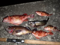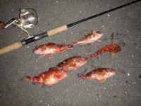仕事の関係で、伊勢の帰りに漁港でワームで根魚を狙ってきました。 根掛かりに悩まされながら、なんとか5匹キャッチ。 |