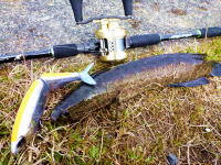 仲間と森竜丸で南沖のキハダへ行ってきました。朝方はカツオが船中数本キャッチされ、中盤からキメジ、キハダ混じりで跳ね始めました。ローテーションでミヨシへ入ったタイミングでボイルが湧きだし、そっと船を近づけたところでポッパーを打ち込むと、ちょうどいい場所に入り、ラインスラックを取ると食ってきました! サイズはやや小さめですが、「ボイルへ入れば食う」ことを字で行く1本でした。相模湾の攻略法にまた一歩近づけたなら良いですが……。 | ||||||||||||||||||