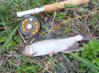湖北の流れ込みでニゴイとケタバスを相手に4番のフライロッドで遊んできました。ちっちゃい黒のゾンカーで水底にタッチダウンして、ニゴイの口元スレスレに流し込むように食わせます。 珍しい事にコウライニゴイではなく、普通のニゴイでした。 それに、最近外来魚のブラックバスやブルーギルが少なくなったせいか、ケタバス(ハス)がかなり復活しているように思えました。ケタバスは銀のティンセルを巻いたウーリーボガーで1撃でした。 |
