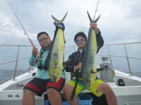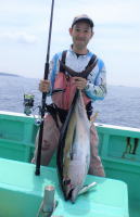 台風の通過後、徳島県の日和佐から出船して、オフショアフィッシングに行ってきました。 当日は台風の通過後という事もあって沿岸は水潮気味。 沖に向かって1時間程走ったところで大きな潮目に遭遇。 ルアーをキャストすると、一時シイラが入れ食い状態に。 その後、キハダのボイルを発見、キャストし30kgクラスがHIT! 天気も良く、波も穏やかで良い1日でした。 |