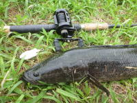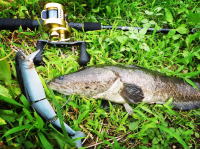バス釣りの際はなるべく雷魚の少ないポイントを選ぶのですが、最近藻刈りの影響か本来の住処を失った雷魚が よくヒットします。バス釣りも雷魚釣りも好きなので複雑な気分です。 |