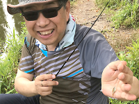 浅井 啓司 竹竿:竿昭作 山の2尺1寸 道糸:PE0.06号 ハリス:テトロン120番 餌:グルテン |
