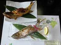 | 2019年8月31日 滋賀県 米原市 ハス 30cm 2匹/1人 ホンモロコ 2匹/1人 ビワマス 刺身・煮つけ 近江牛他 |