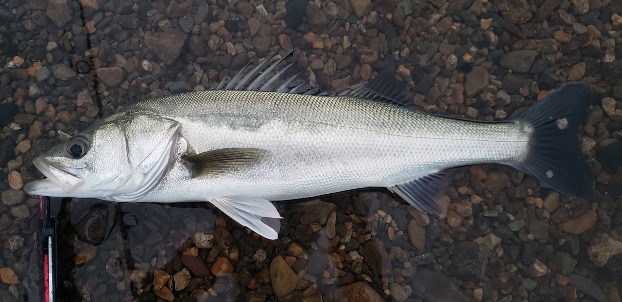 久しぶりの実家帰省でスズキを釣ることができました。 サイズはよくないですが、綺麗な魚体でした。 |