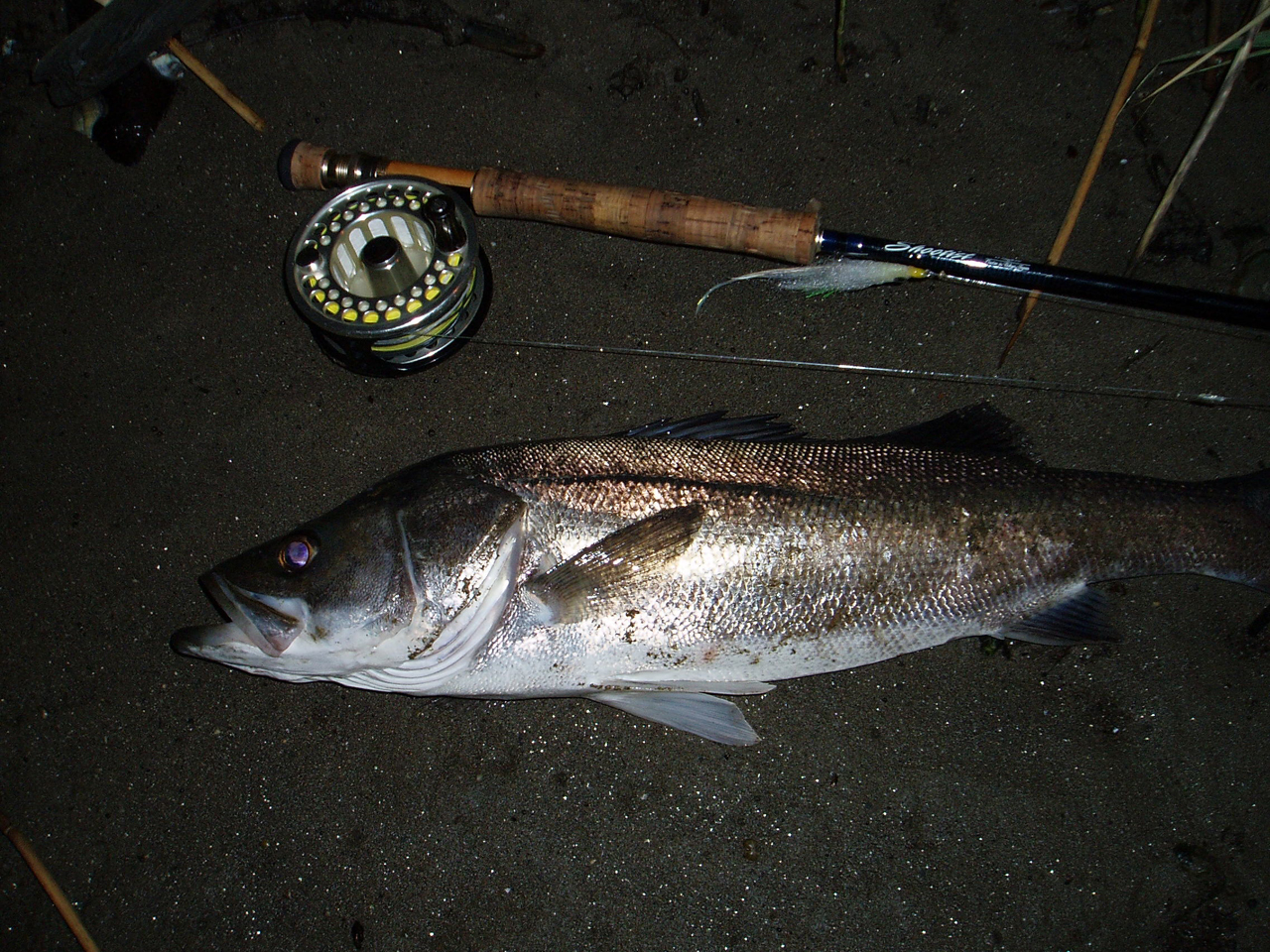 明朝にイワシの群れにボイルするシーバスを狙ってきました。 夜半頃からボイルが始まり、白っぽいストリーマーをボイル目がけてキャスト。 立て続けに小型のシーバス2本をキャッチ。 しかし、夜明け前にまったくボイルがしなくなり、やはりと思った瞬間テンションと共にフライをロスト。 今年もついにタチウオが入ってきました。 結局、小型のシーバス2本、ロストしたフライ3本。 まったくついてません(笑) |