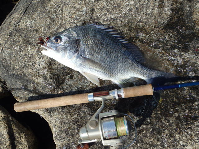 小林 弘明 タックル:スプラッシュカスタム トラウトロッド 7フィート PEライン 0.8号 チヌグラブ+ジグヘッド |