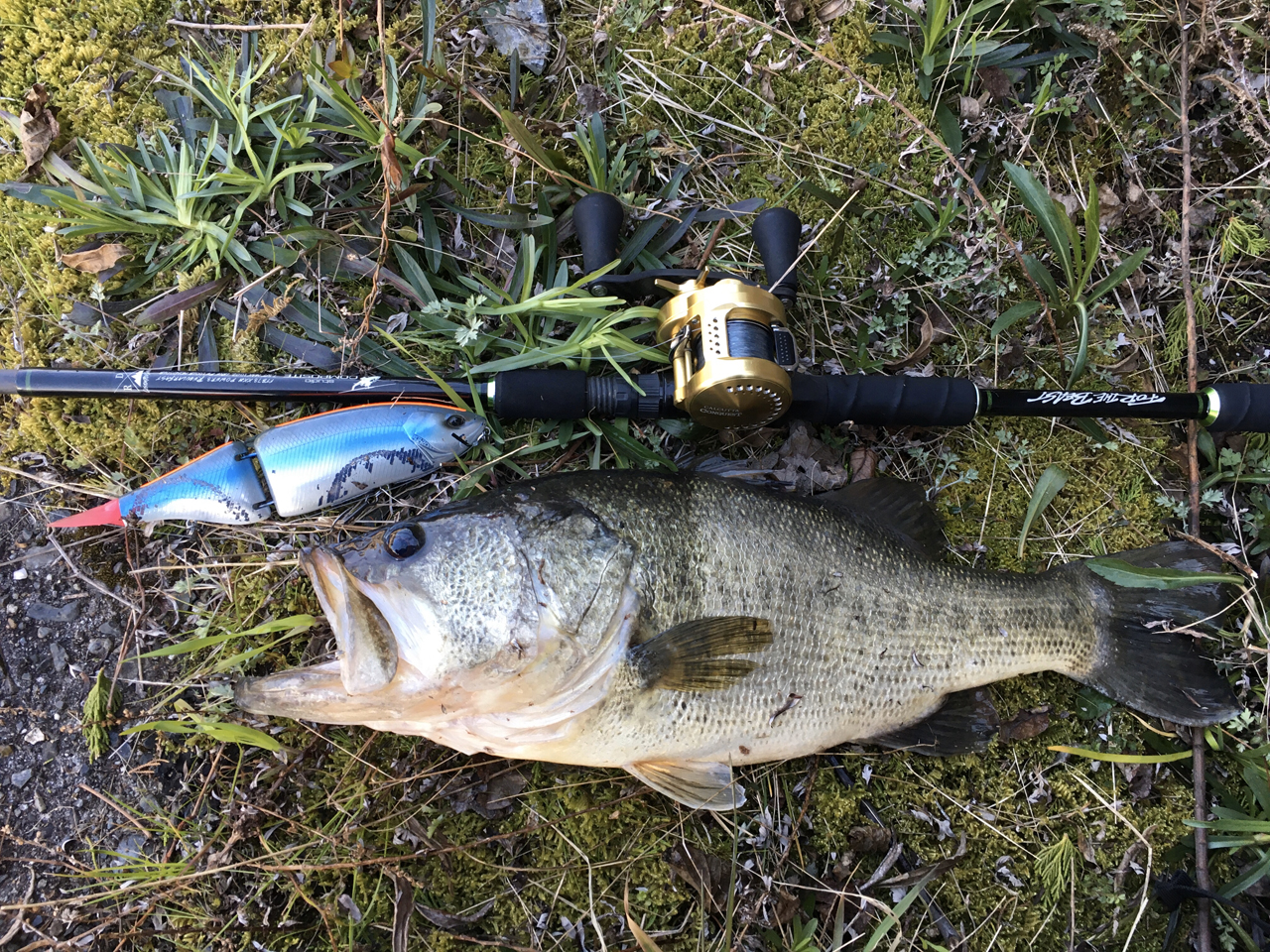 暖かい陽気に誘われ琵琶湖は人だらけ。 間違いなくバスより人が多い気がします。 こんな時は地元の誰もやらない超小場所のドブを撃つと一撃! かなり激しい横っ飛びバイトで眠気も飛びました。 頭の大きさだけはロクマル、体はガリガリの最近南湖でよく釣れる体型の魚でした。 |