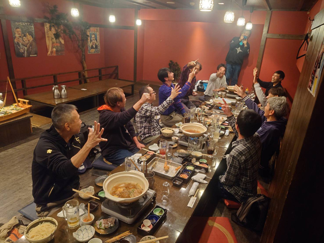 3年ぶりにスプラッシュの総会&ミーティングが開かれました。 2023年度の収支報告と今年の活動報告、それと来年度の活動計画について話し合われました。 総会の後は、豪華な海鮮船盛料理と鍋に、飲み放題の大宴会で大盛り上がり。 その後は、スプラッシュ恒例の大じゃんけん大会が開かれ、 ハンドメイドルアーや滅多に手に入らないレアなお宝ルアーを巡って熱いバトルが繰り広げられました。 |