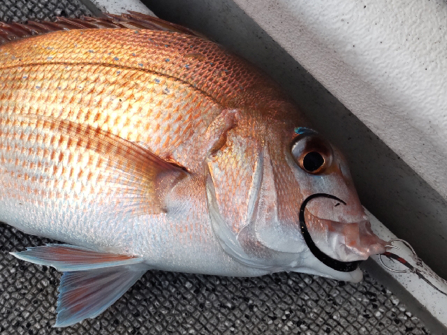 60Upを頭に3連続でマダイキャッチ。 終始二枚潮で、底しっかりとって1〜3mまでデッドスロー、でしか釣れんパターンでした。 釣れてないときのストレスはハンパなしです。 |