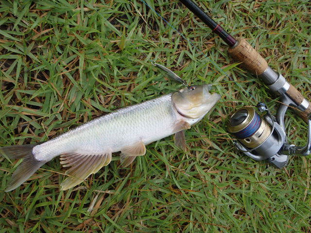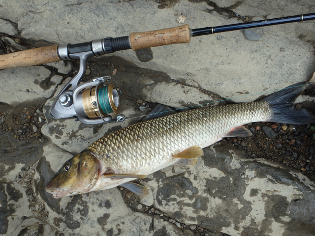 その後、さらに下流のポイントでスプーンでニゴイ。