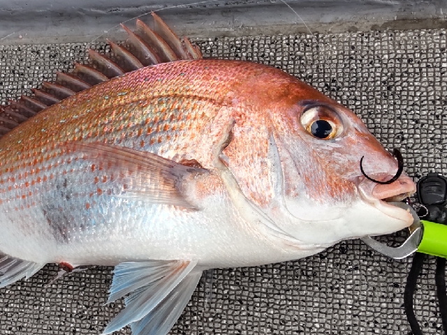50Upを頭にマダイ3枚キャッチ。 ネクタイのカラーのマッチングに四苦八苦しました。 |