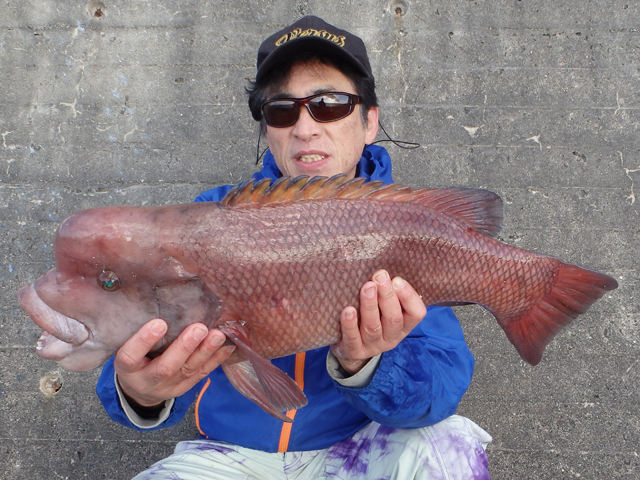 森本 武司 タックル:アブKR-X、オシコン201HG ライン:PE0.6号、フロロカーボン4号 ルアー:鉛玉120g、カーリーネクタイ、ワーム |