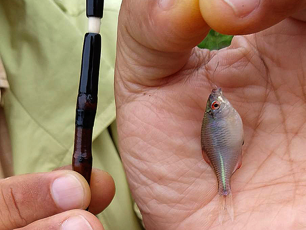 小林 弘明 タックル:6フィートトラウトロッド ルアー:チニング専用グラブ |