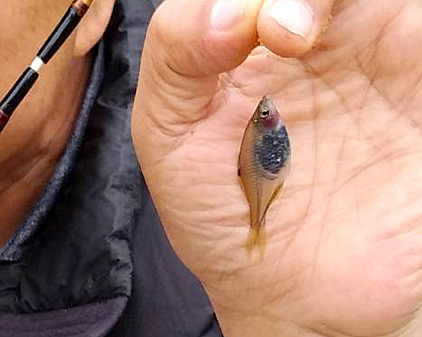 釣ったタナゴに違和感を覚え、観察ケースに入れてじっくり観察すると、