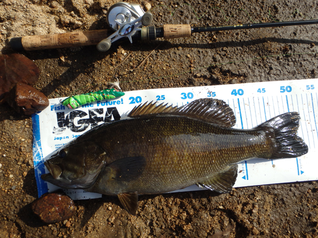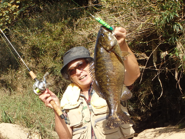 大学時代の友人とスモールマウス狙い 午前中は全くアタリなし。 夕方になってようやく2本キャッチ。 |
