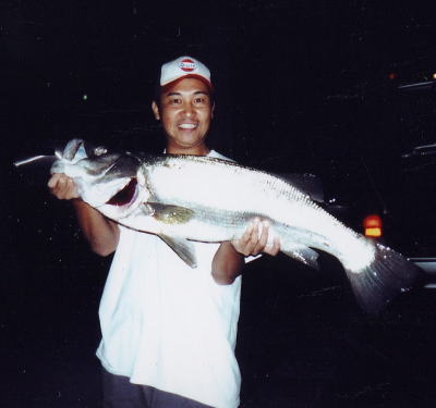 岸釣りで大好きなのがヒラスズキです。、あと、ヒラマサ、カンパチ、ハマチも大好きですね。ヒラメ、マゴチは食べて美味しいのでかなり真剣に狙っています。 僕はポイントを開拓するのが好きで、人のあまり行かないような所を見つけると、そのポイントに釣りに行きたくて・・・もう大変ですね。 、一人で釣りに行く理由は、ここにが有るんです! 危険を冒してまで釣れるかどうかも分からない場所には、誰も付き合ってくれませんね。 僕には、どっちが賢いかは未だにに分からないですけど・・・。 僕はほとんど一人で釣りに行きますが、仲間でもあり、ライバルでもあり、目標でもあり、兄弟のようでもあり、なんだか分からないけど気の合う二人の友人がいます。この二人がまた笑えるくらい、釣りが大好きで信じられないほど、釣りに情熱を持っていて僕の訳の分からない考えにもチャント話を聞いてくれる?立派な?人達です。 二人を紹介します。 宮本さん、一番の年上で釣りだけでは無くサーファーでもあり、山の花を見に行くのが趣味でもある多彩な人です。宮本さんは近場の魚、ヒラスズキ、スズキ、アカメの情報に詳しくポイントは誰よりも知ってる頼もしい人です。宮本さんの釣りには、まるで職人のような何処までも妥協のない信念がありますね。この人には釣りだけではなく色々な事を教わっています。